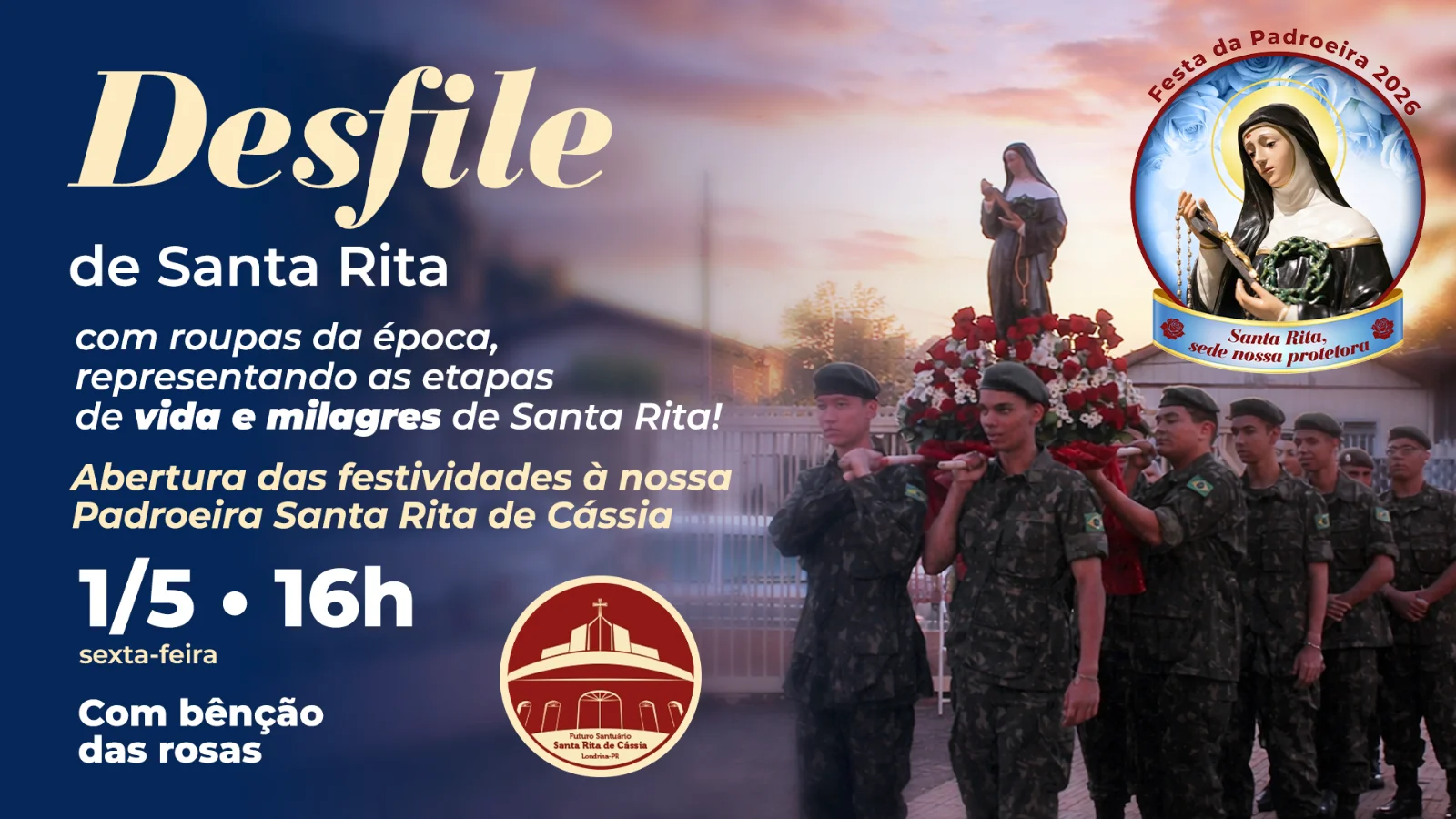 O Futuro Santuário Santa Rita de Cássia, em Londrina, dará início às celebrações do Mês da Padroeira 2026 com um momento especial de fé e devoção: o tradicional Desfile de Santa Rita.