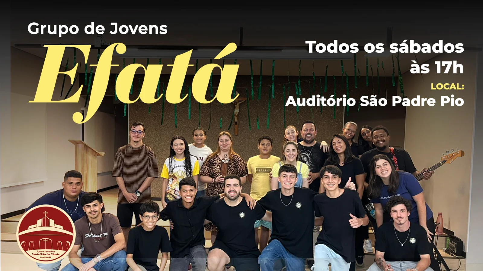O Futuro Santuário Santa Rita de Cássia convida todos os jovens para participarem do Grupo de Jovens Efatá, um espaço de encontro, amizade e experiência com Deus.
