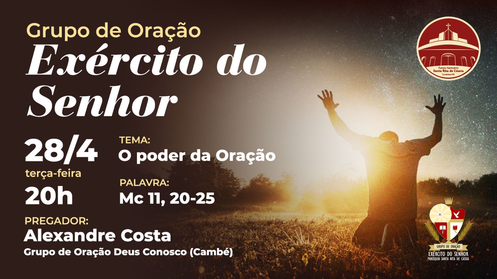 O Grupo de Oração Exército do Senhor é um momento de louvor, pregação e uma experiência viva com o poder da oração.